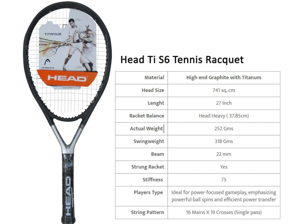 The Ti.S6 features an oversized 115 square inch head for maximum forgiveness. At just 8.6 ounces strung, it’s remarkably lightweight yet maintains stability thanks to its head-heavy balance (7 points). The racquet’s 27.75-inch length offers extended reach, while the titanium-graphite composite construction provides stiffness with minimal weight. Additionally, the open 16×19 string pattern enhances spin potential.